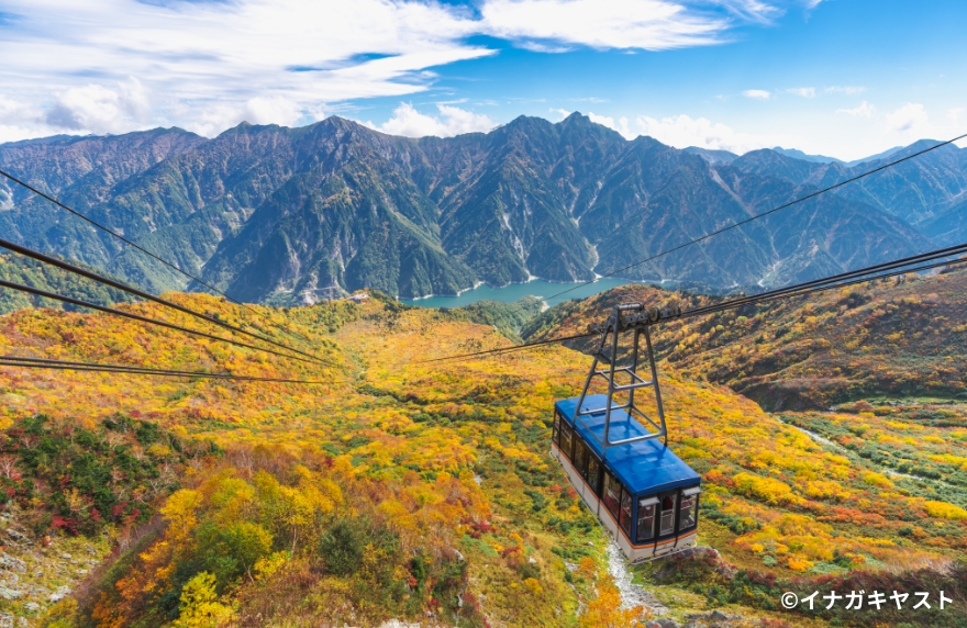 乗り物だけで標高2,450mの世界へたどり着くことができる立山黒部アルペンルートの秋。